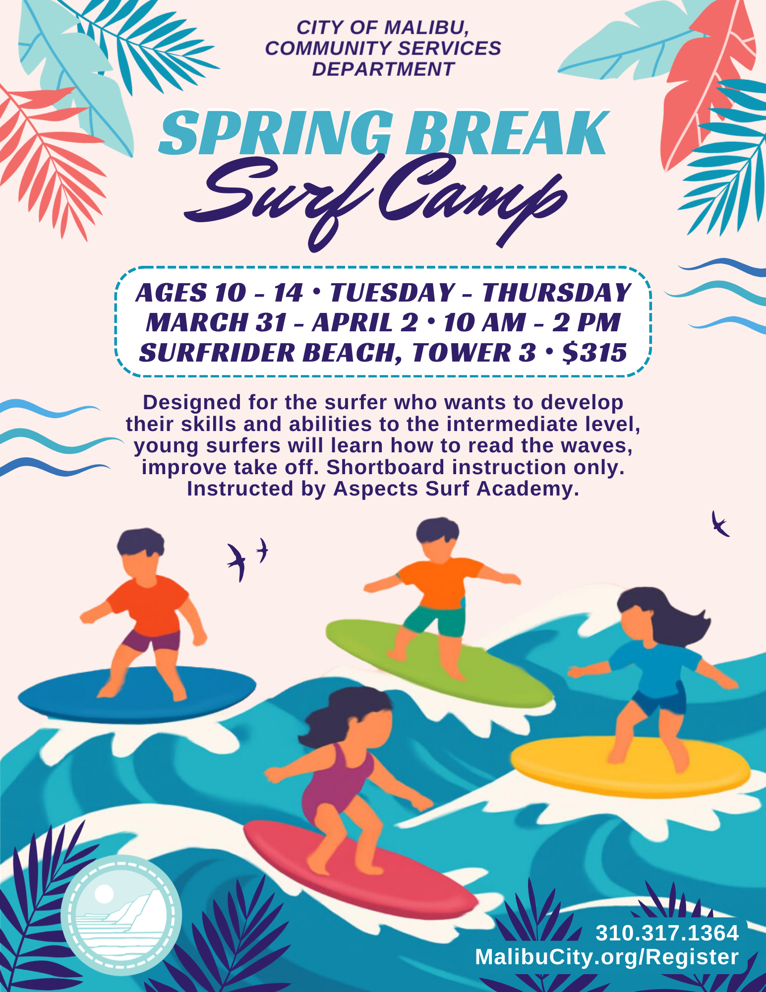 Save the Date: Summer Day Camp registration opens on Monday, May 11 at 8:00 AM at MalibuCity.org/Register. A full list of programs, ages, and descriptions will be available in the Summer Recreation Guide, available online and mailed to Malibu residents the week of May 4.