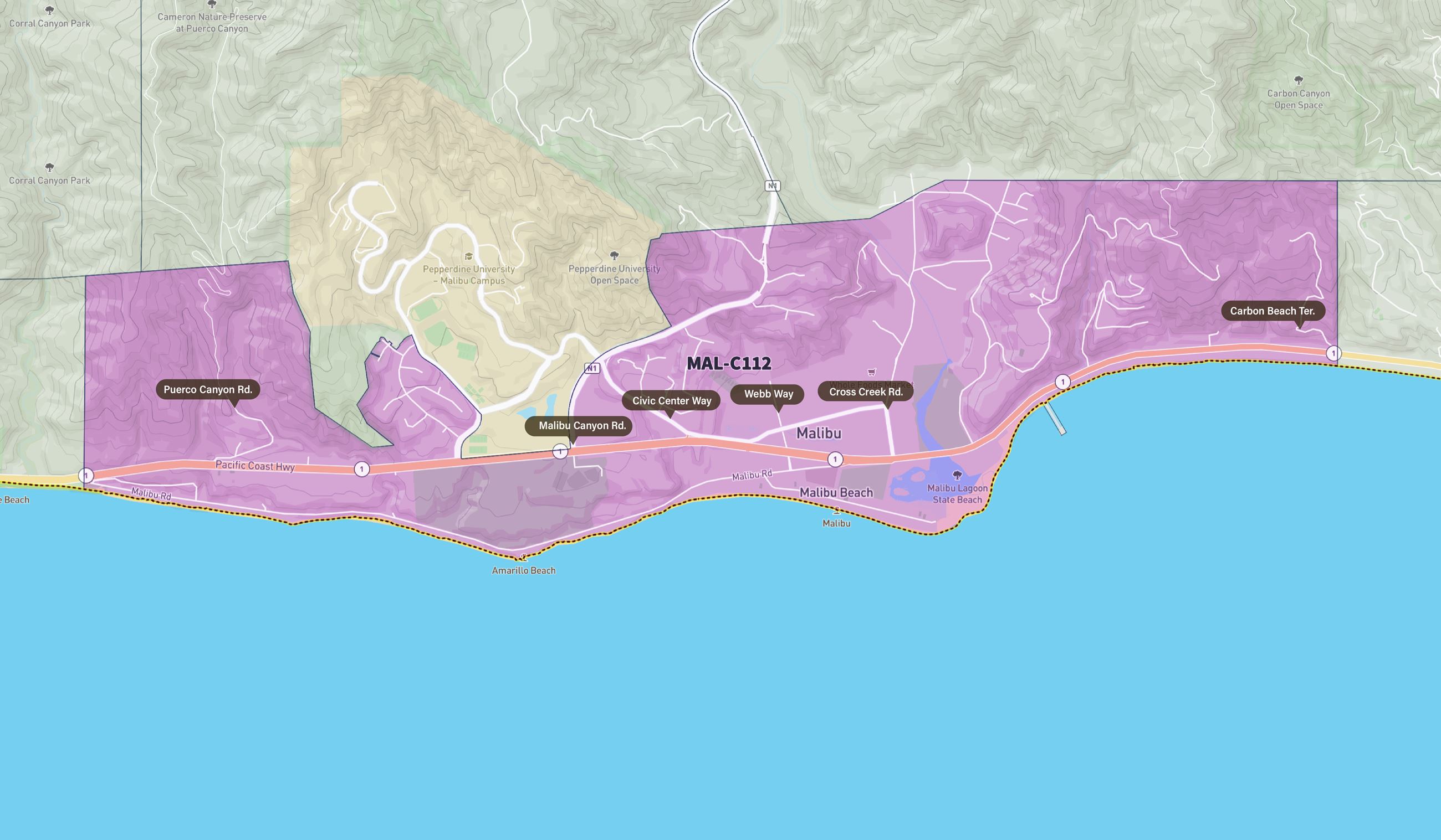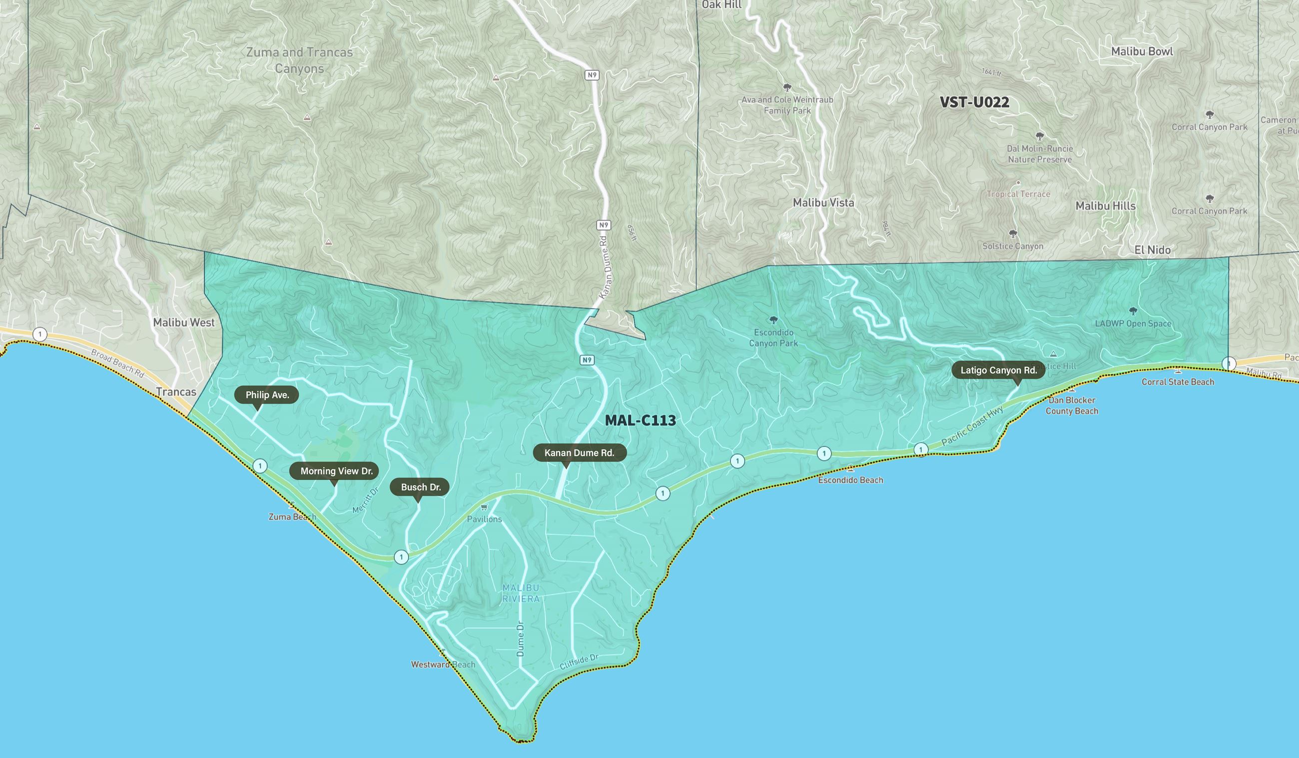 Los Angeles County adopted new official disaster response and evacuation zones in November 2022. Malibu’s zones are now numbered MAL-C111, MAL-C112, MAL-C113 and MAL-C114. The new zones for Malibu are the same as the City’s previous Evacuation Zones (11-14) which were adopted in February 2020 as part of the City’s official Mass Evacuation Plan.