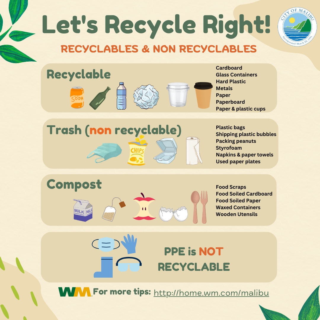 For more information on recycling info, service updates, and self-service tools check out WM local service hub: Waste & Recycling Collection Malibu, CA | WM